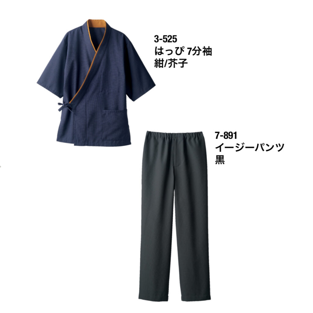 3-525 はっぴ 兼用 7分袖(紺/芥子)