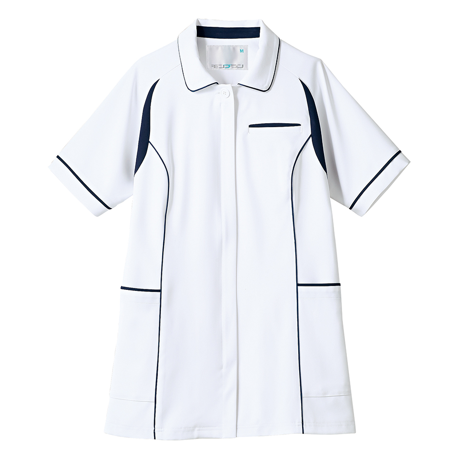 スクラブ レディス 半袖 73-2100 (白/グレー)
