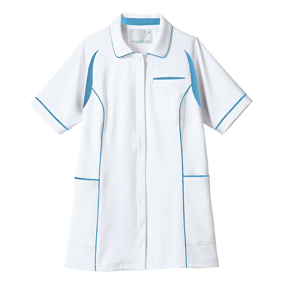 スクラブ(半袖) MS007-0133 (白/Mターコイズ/ターコイズ)