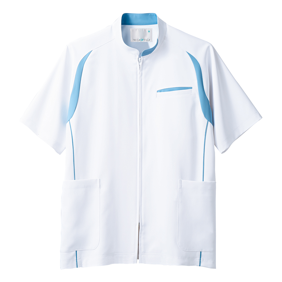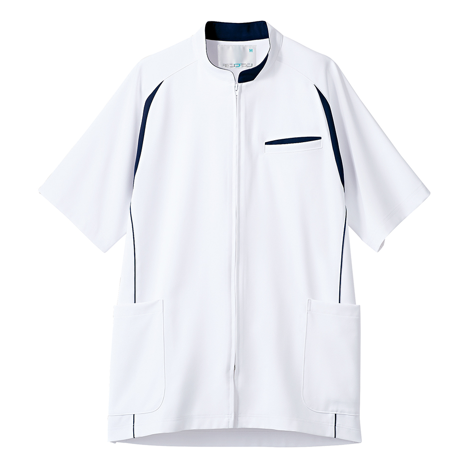スクラブ 兼用 半袖 MS004-0122 (白/ネイビー/ブルー)
