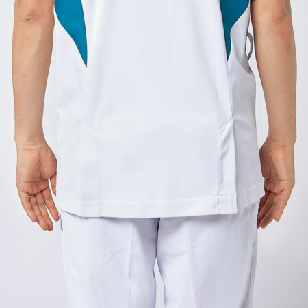 スクラブ レディス 半袖 73-2274 (白/ターコイズ)