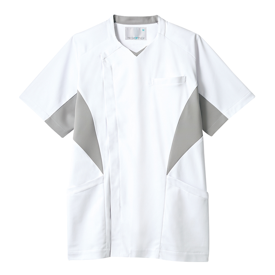 スクラブ レディス 半袖 73-2110 (白/グレー)