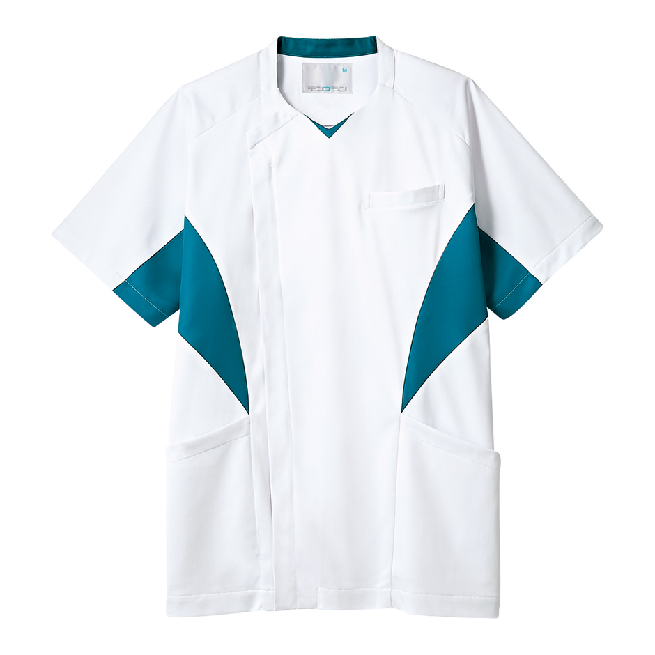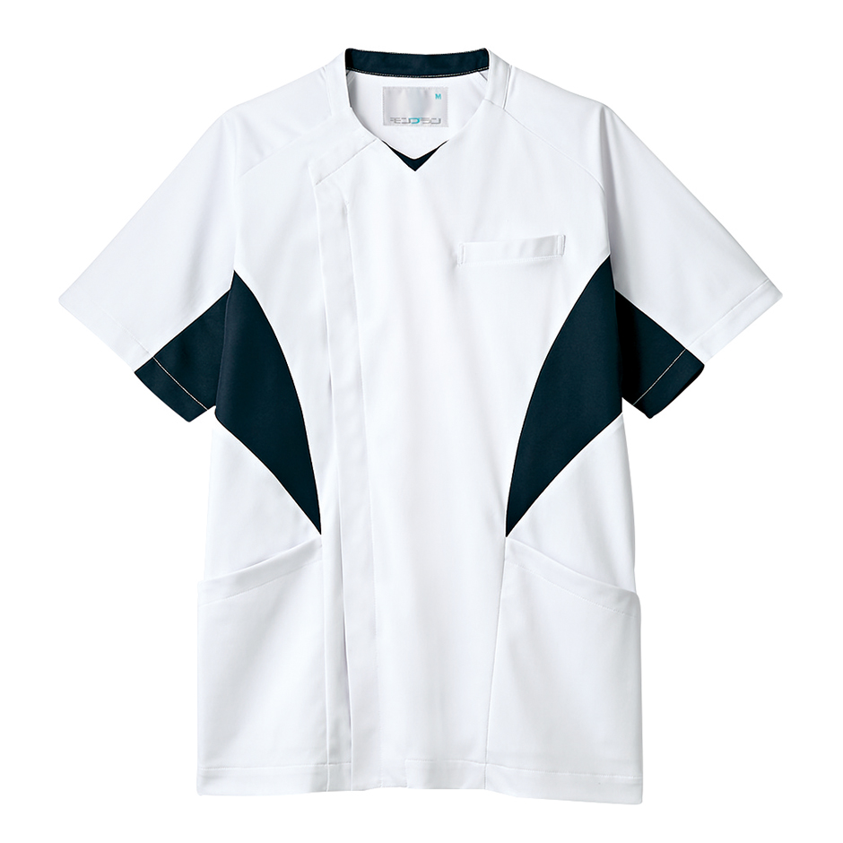 スクラブ(半袖) MS854-0104 (白/ウォームブルー)