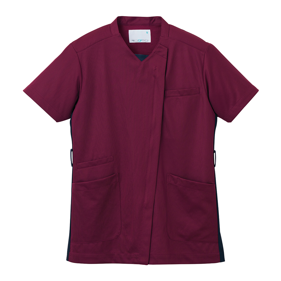 スクラブ メンズ 半袖 72-1306 (白/ワイン)