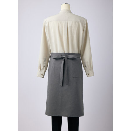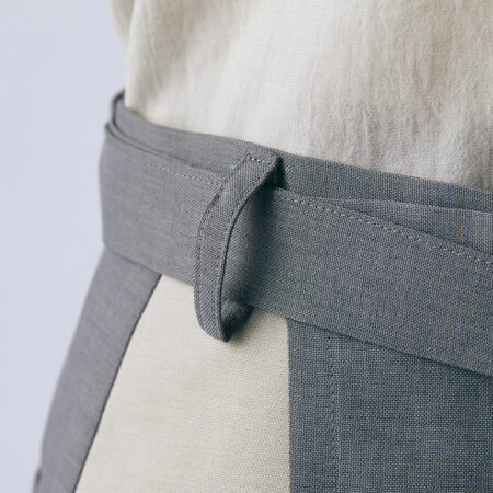 トップスのカラーに合わせて、左右どちらの前合せでも着用可能なサロンエプロン。