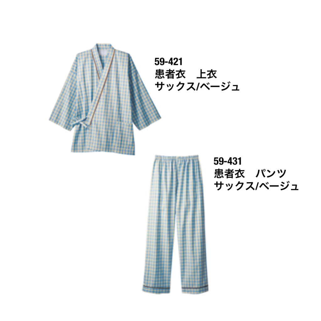 59-431 患者衣・パンツ(サックス/ベージュ)